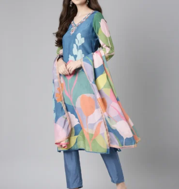 Aentic Women’s Floral Printed Kurta Pant & Dupatta Set – Elegant Ethnic Wear
