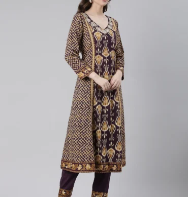 Aentic Women’s Printed Kurta Pant & Dupatta Set – Elegant Ethnic Wear