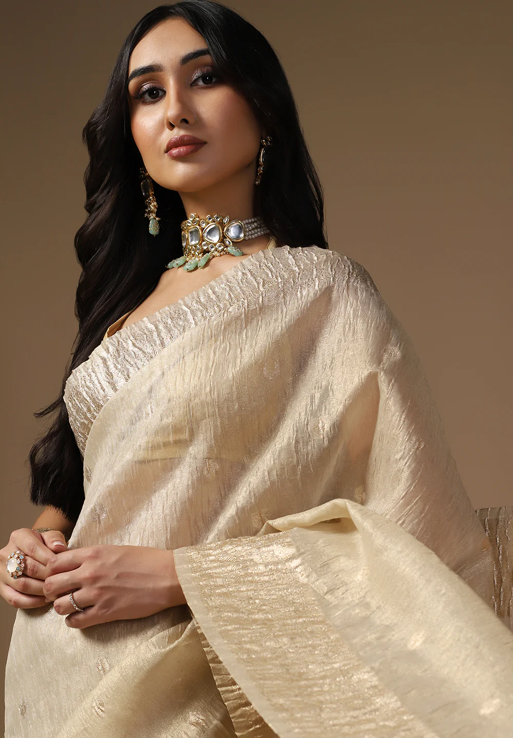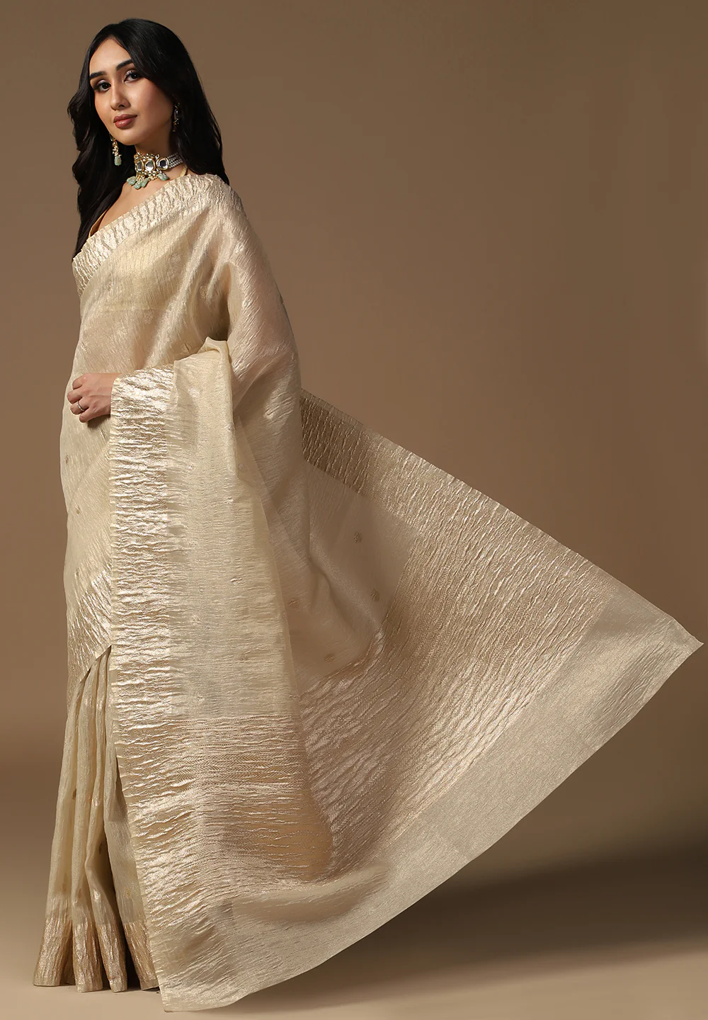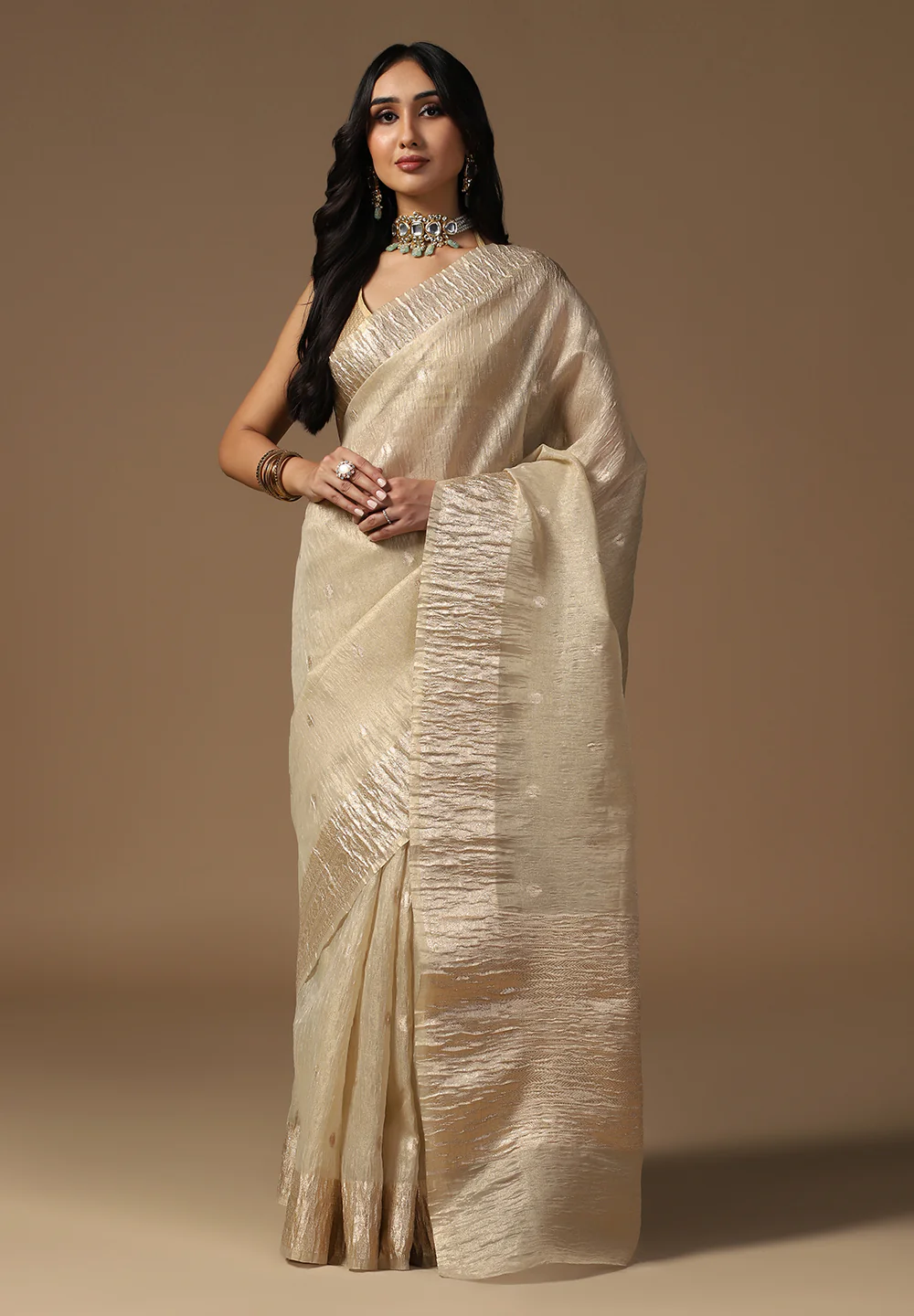 Perfect for weddings, festivals, and special occasions, this saree adds a touch of grandeur and elegance to your look. The lustrous texture and graceful drape enhance your silhouette, making you stand out effortlessly.