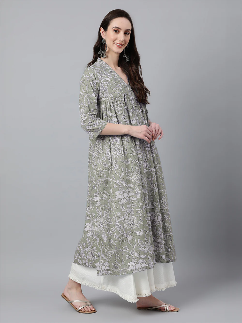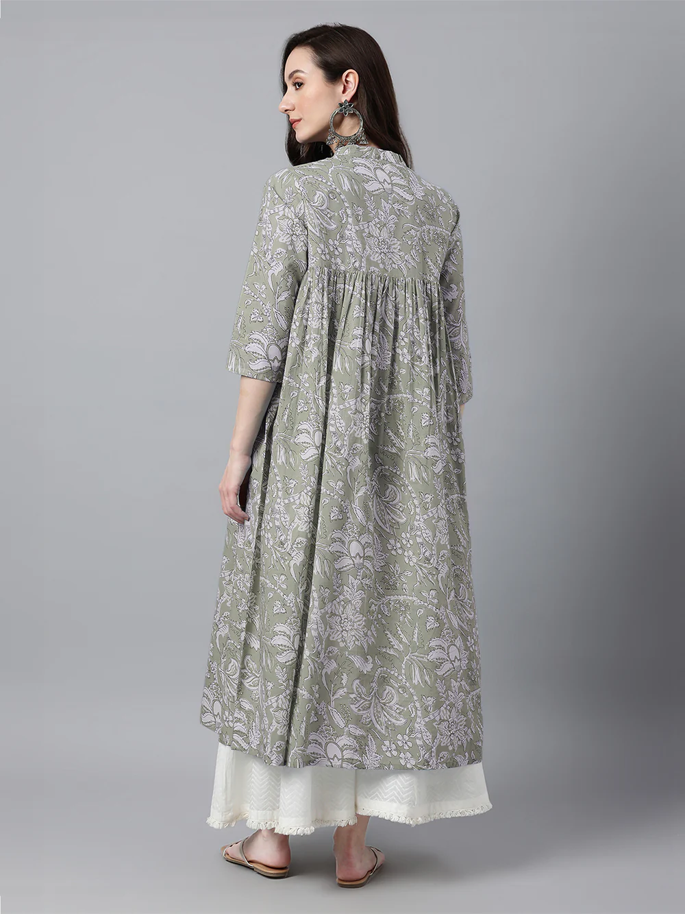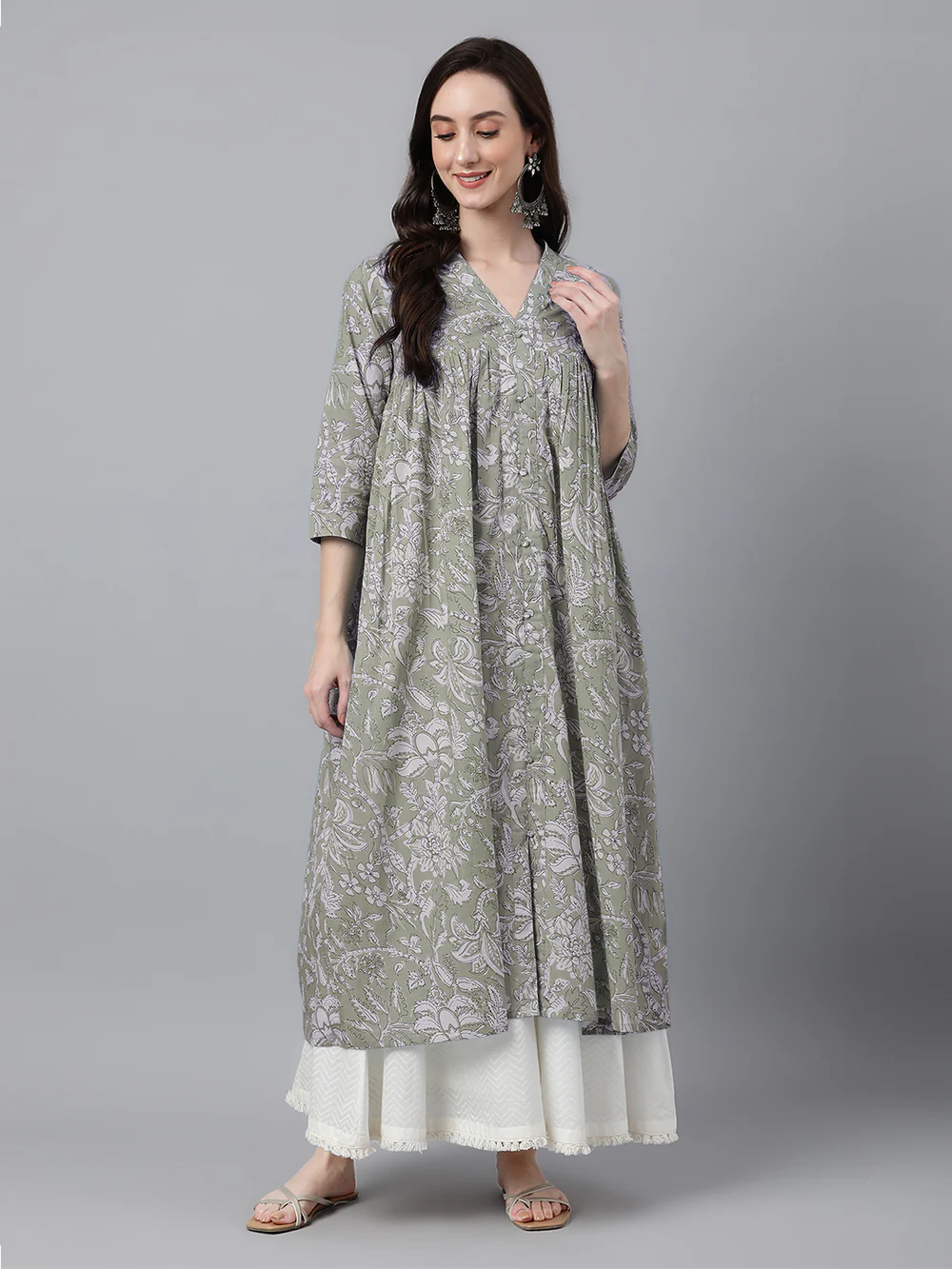 Be the first to review “Aentic Light Green Floral Cotton Flared Kurta”