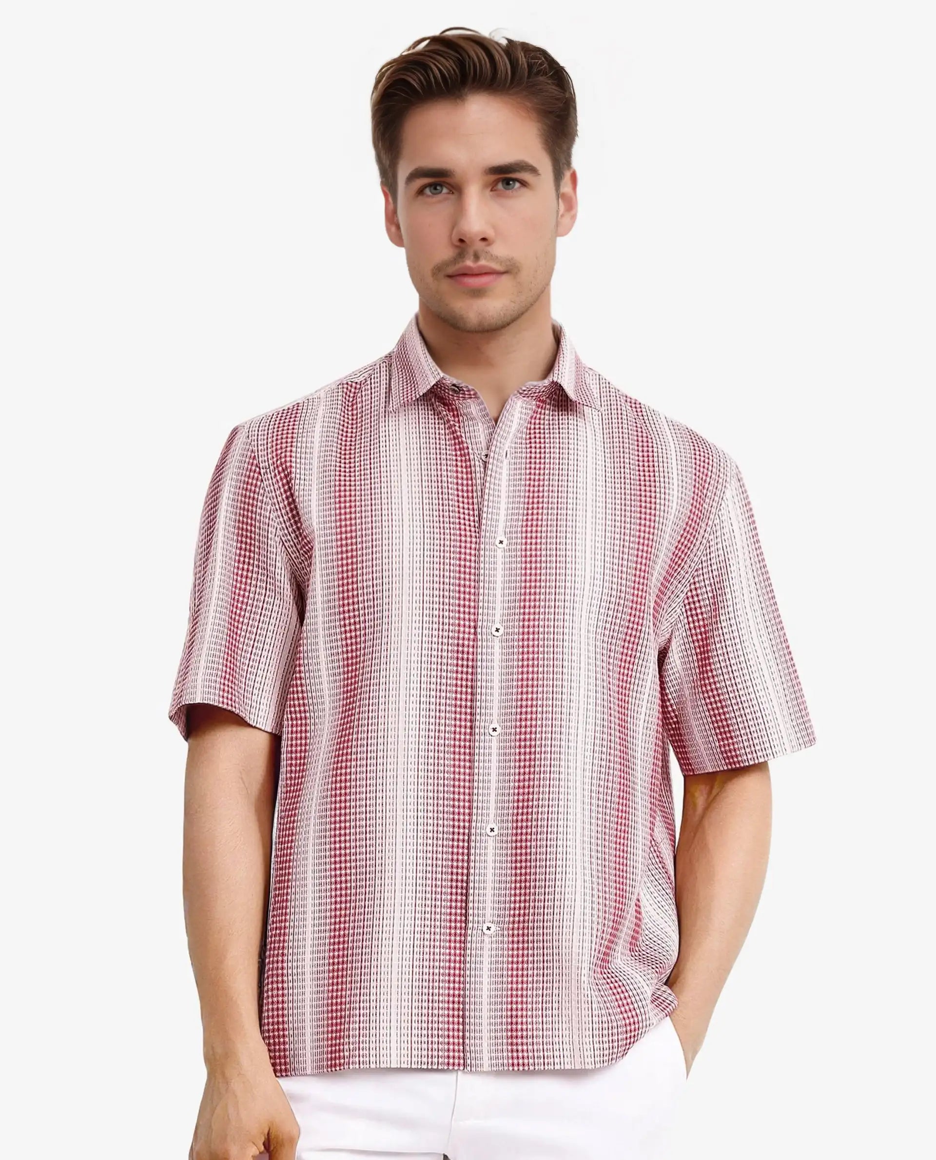 Aentic Men’s Frawla Red Cotton Striped Print Boxy Fit Half Sleeve Collared Shirt
