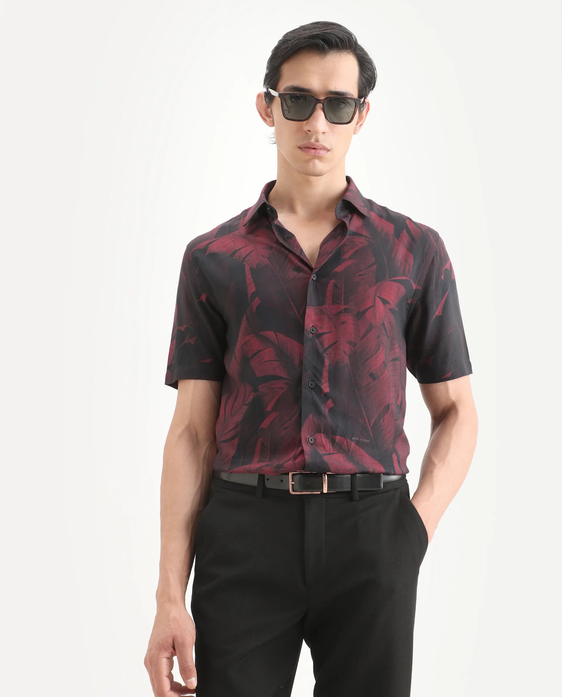Crafted from premium viscose fabric that delivers exceptional breathability and a refined fall. The dusky red hue provides versatile styling potential, while the tropical print adds visual interest without overwhelming the design. Featuring a spread collar and half sleeves, this regular fit piece transitions seamlessly from weekend outings to relaxed office settings. The viscose composition ensures comfort throughout the day, making it an essential addition for the discerning gentleman seeking quality and style in equal measure.- Viscose- Half Sleeve- Regular Fit- Tropical PrintSIZEModel height 188cm. The model (Chest-39, Waist-32, Hips-38) is wearing a size M