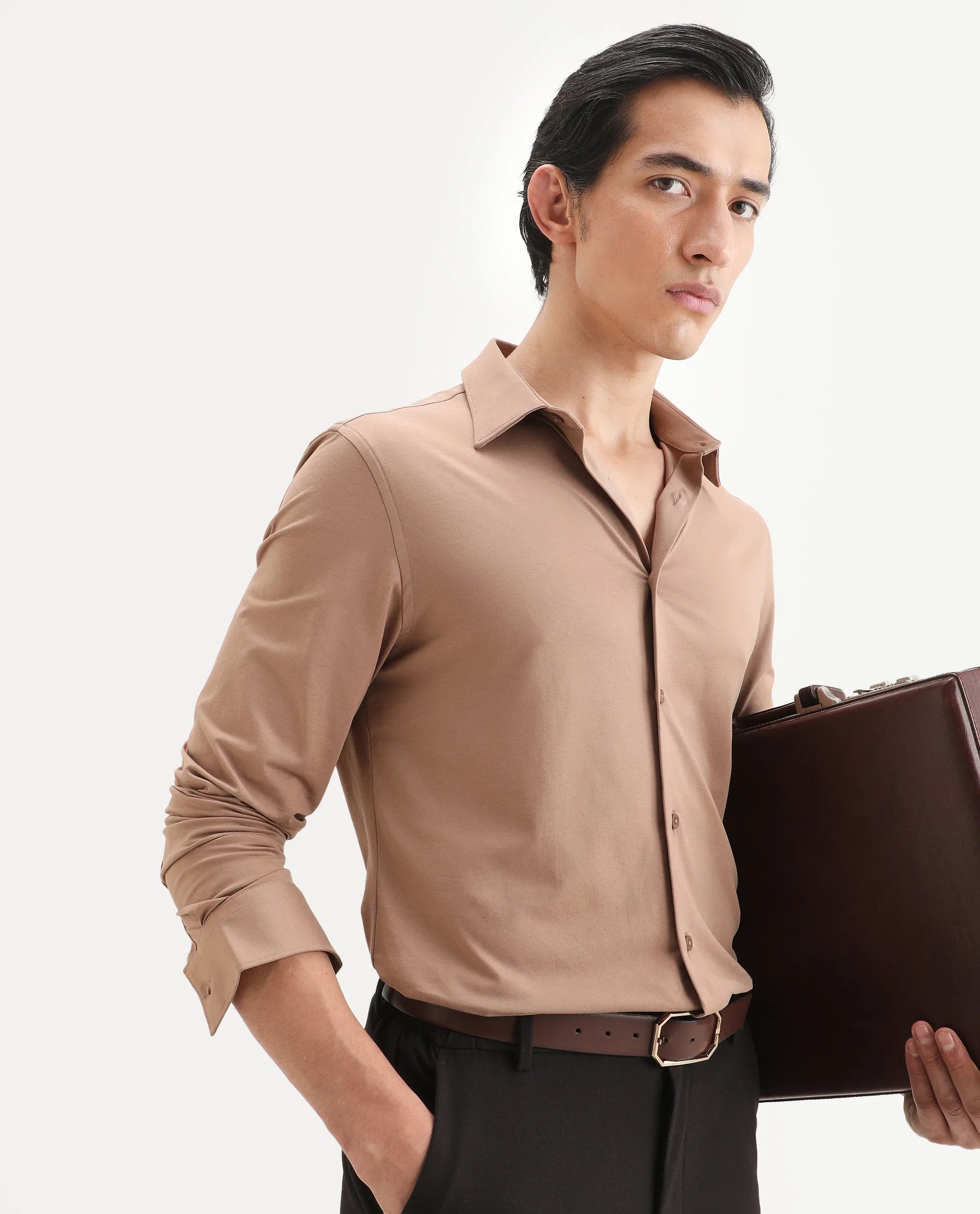Crafted from premium cotton fabric, it delivers exceptional breathability and comfort for all-day wear. The full sleeves and spread collar create a polished, versatile silhouette that transitions seamlessly from office to casual settings. Cut in a regular fit, this plain design offers timeless appeal without unnecessary embellishment, making it an essential foundation piece for any discerning gentleman’s collection. Perfect for layering or wearing standalone, this shirt exemplifies understated elegance and refined craftsmanship.- Cotton- Regular Fit- Full Sleeve- Button ClosureSIZEModel height 188cm. The model (Chest-39, Waist-32, Hips-38) is wearing a size M