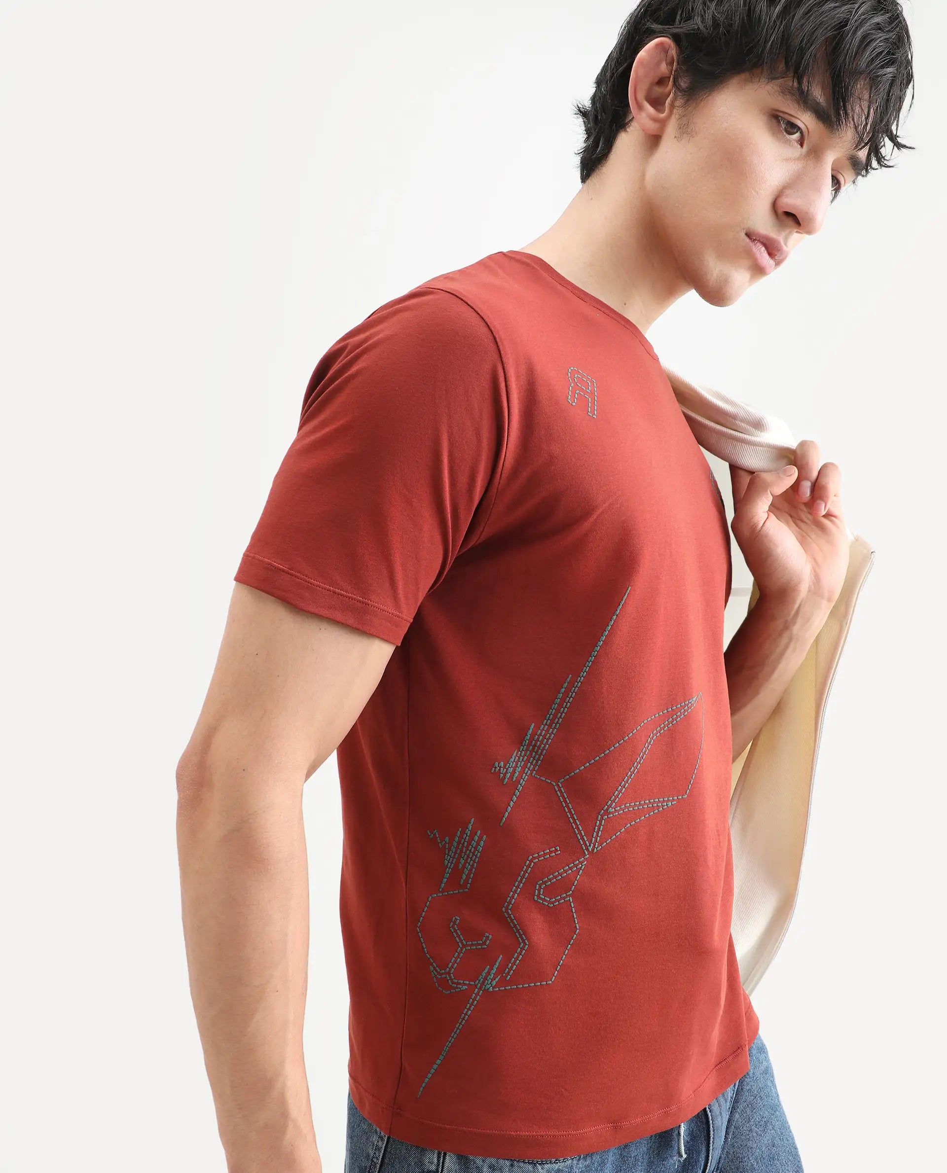 Aentic Men’s Vin Rust Cotton Blend Fabric Half Sleeve Crew Neck Regular Fit T-Shirt