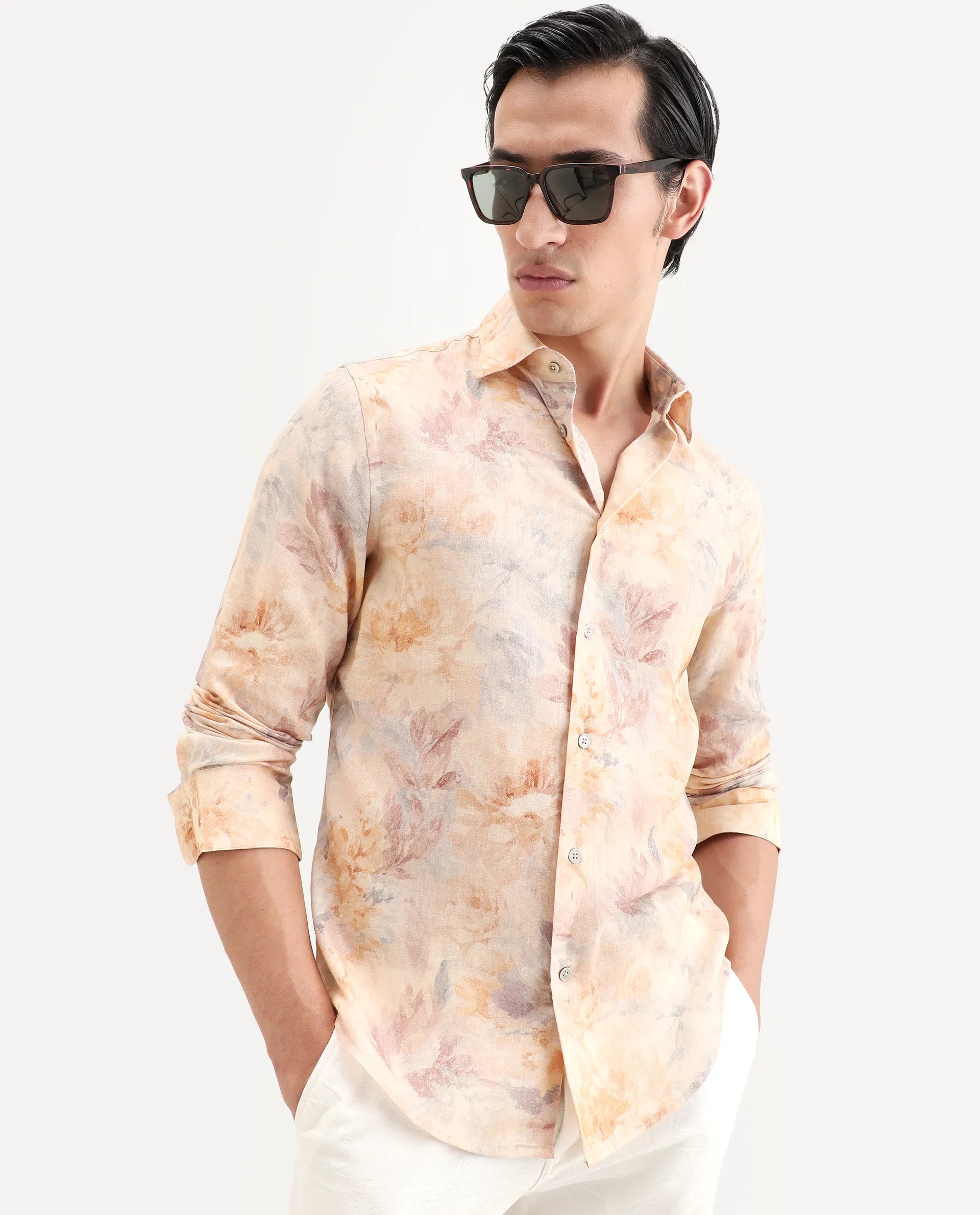 Elevate your casual wardrobe with this sophisticated linen blend shirt from Aentic. Crafted from a breathable linen-cotton blend, the Wolo delivers comfort and durability for warm weather styling. The beige base pairs seamlessly with an intricate floral print, while the spread collar and full sleeves provide a polished silhouette. Cut in a regular fit for versatile layering, this piece transitions effortlessly from weekend gatherings to relaxed office settings. A timeless investment for the discerning man seeking quality and understated elegance.- Linen Blend- Floral Print- Regular Fit- Full SleeveSIZEModel height 188cm. The model (Chest-39, Waist-32, Hips-38) is wearing a size M