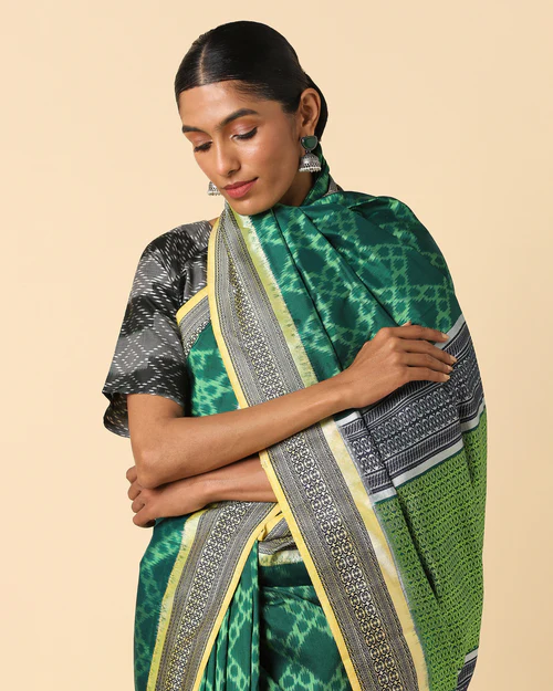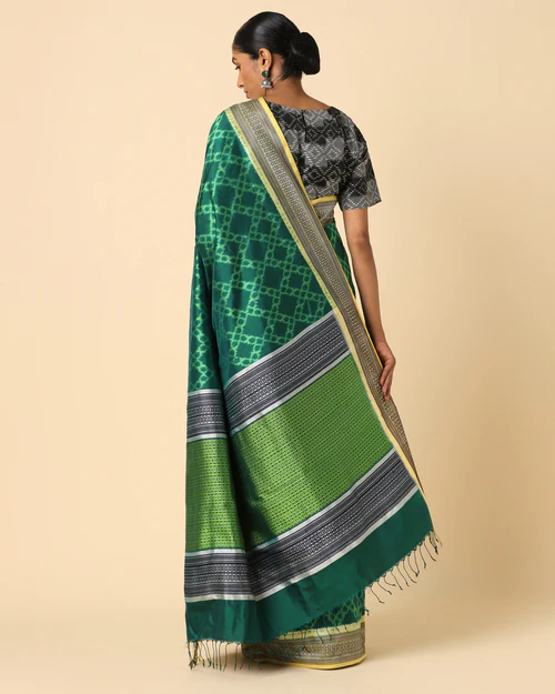The lustrous texture of silk adds a royal touch, while the Pochampally design reflects heritage craftsmanship. Lightweight yet graceful, this saree drapes effortlessly, making it an ideal choice for festive occasions, weddings, and special celebrations.