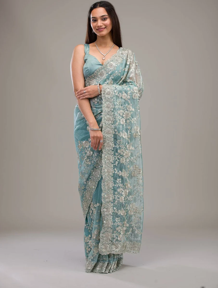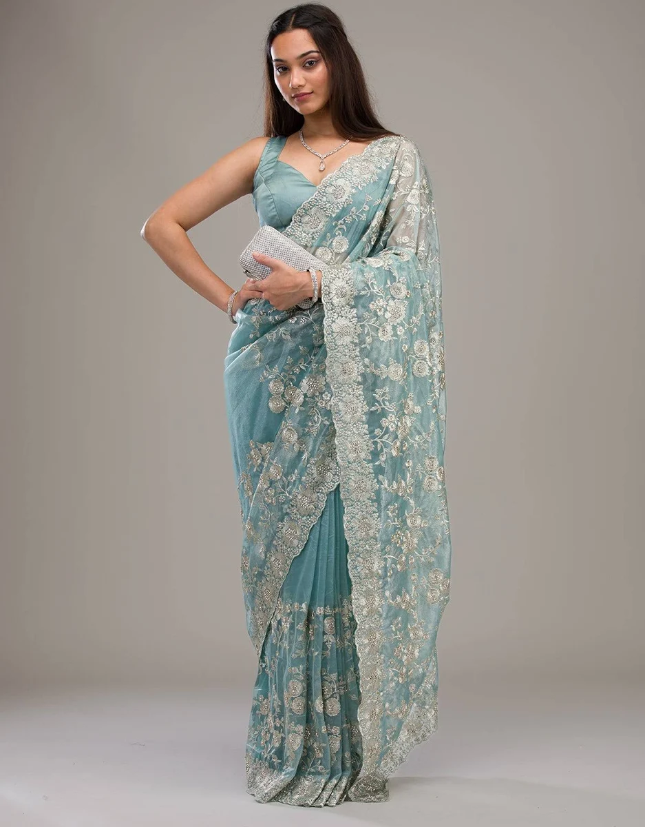 The soft sea green color enhances the charm of the saree, making it ideal for weddings, festive occasions, parties, and special celebrations. The sheer and lightweight fabric drapes gracefully, ensuring comfort and a flattering silhouette.