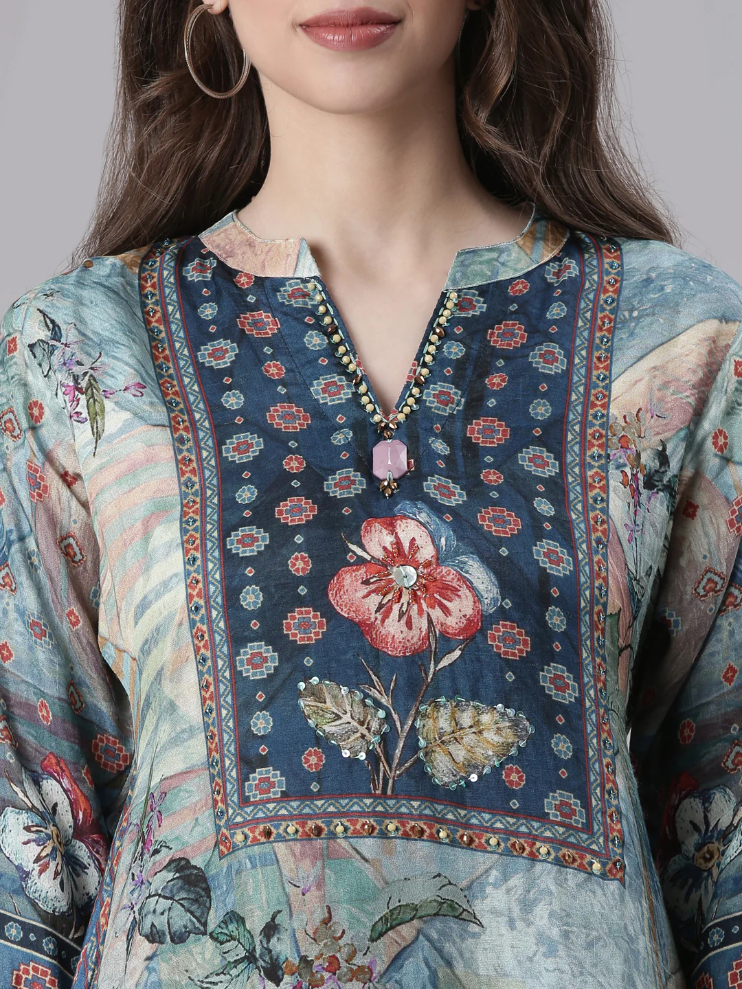 The Aentic Women’s Floral Printed Kurta & Palazzo Set is designed for women who appreciate a perfect blend of modern style and traditional elegance.