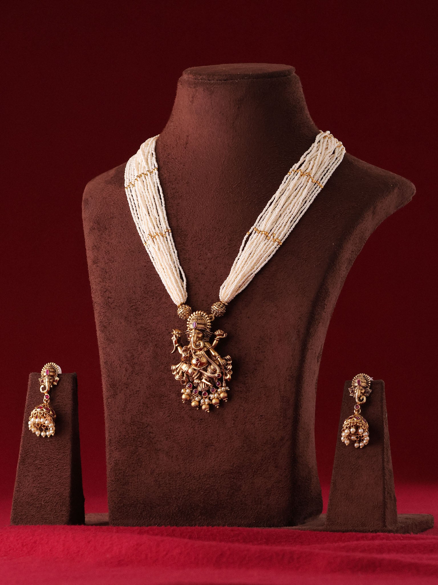 Antique Temple Ganesh Pearl Pendant Set