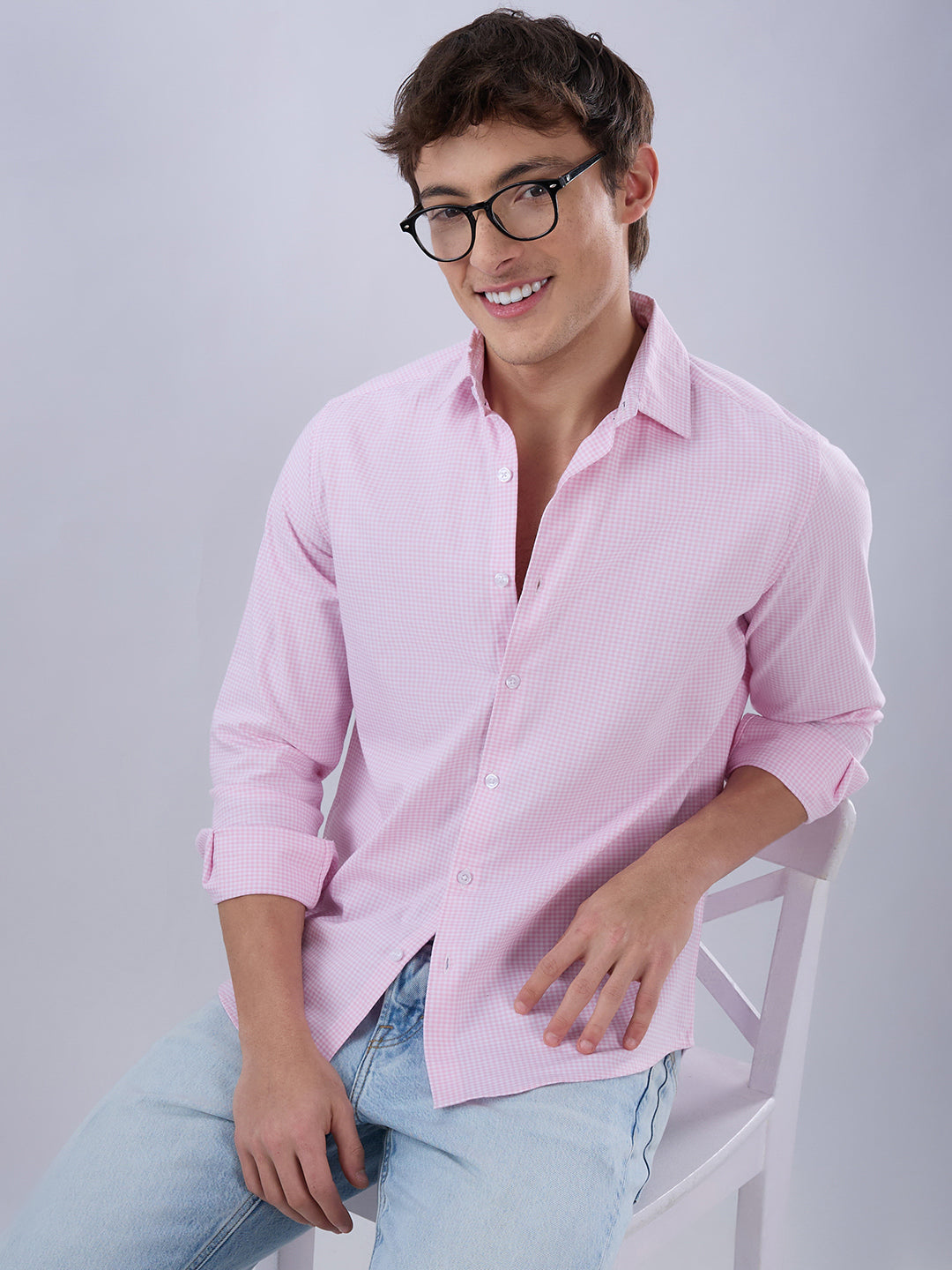 This Baby Pink & White Tiny Checkered Oxford Shirt features a delicate micro-check pattern in a soft, refreshing palette. Lightweight and comfortable, it delivers a crisp, clean look perfect for office days or relaxed outings.