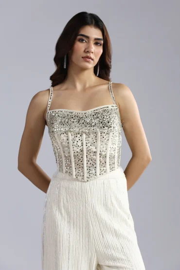 This beautifully made Blue Designer Gown with Stonework shows pure elegance and style. Created with careful detail, it has fine stone designs that give it a soft, shining, royal look.