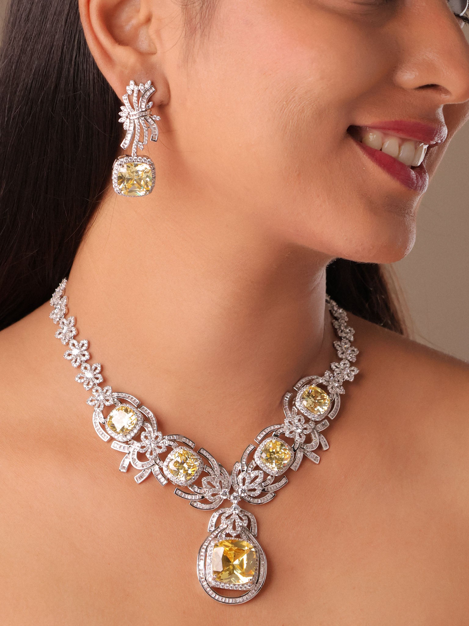 Citrine Yellow Stone Diamond Necklace Set