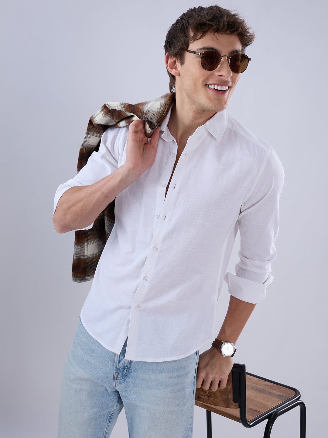 Timeless, tailored, and endlessly versatile, this Classic White Refined Everyday Shirt is a wardrobe essential designed for effortless style. Crafted from premium, breathable fabric, it delivers a crisp look with a smooth, comfortable feel that lasts all day. Whether paired with tailored trousers or worn casually with denim, this shirt is the definition of modern charm you can rely on every day.