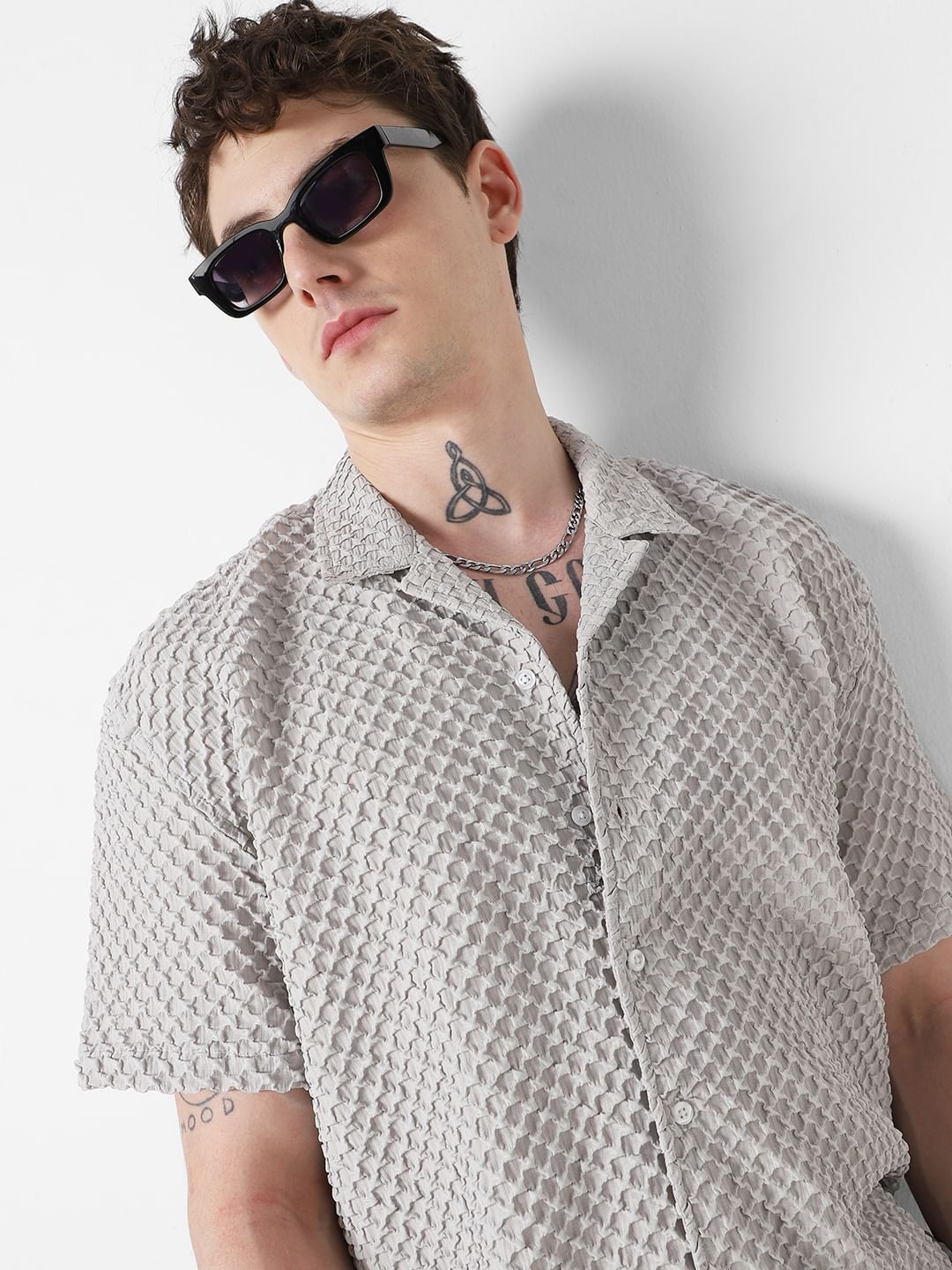 Upgrade your wardrobe with our Cloud Grey Embossed Patterned Oversized Shirt. The intricate embossed pattern adds a touch of sophistication and texture, while the oversized fit provides comfort and modern style. Perfect for any occasion, this versatile shirt seamlessly blends elegance with contemporary fashion, making it a standout piece in your collection.