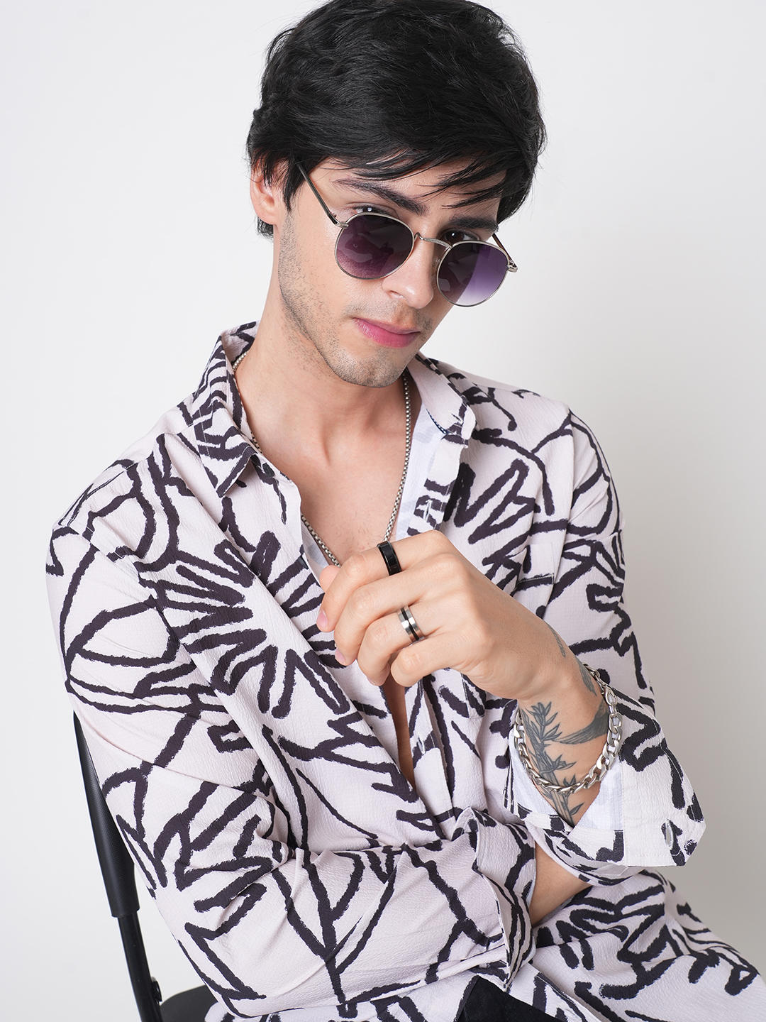 Step out in style with this Cream & Black Abstract Printed Creased Shirt, designed to make a bold fashion statement. The dynamic print, combined with the unique creased texture, creates a visually striking piece that’s perfect for adding a touch of artistry to your wardrobe. Versatile and eye-catching, this shirt effortlessly blends creativity with comfort, making it ideal for both casual and eclectic ensembles. Perfect for those who love to stand out with a unique and contemporary look.