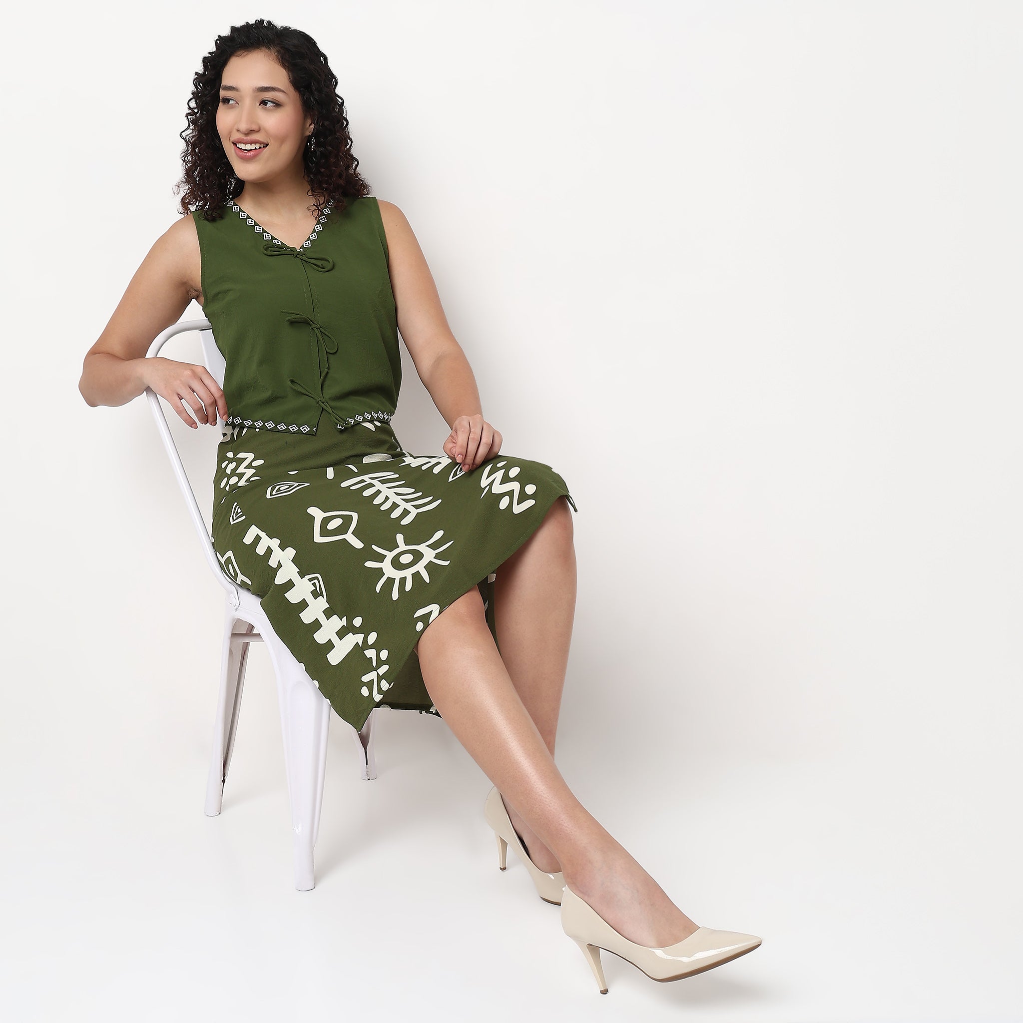 Experience the perfect blend of style and comfort with our Printed Crop Vest with Tie-Up. Crafted from high-quality polyester, this vest offers a lightweight and breathable feel, making it ideal for warm weather. The vibrant printed pattern adds a touch of fun and flair to any outfit, while the V-neck design enhances your neckline elegantly.