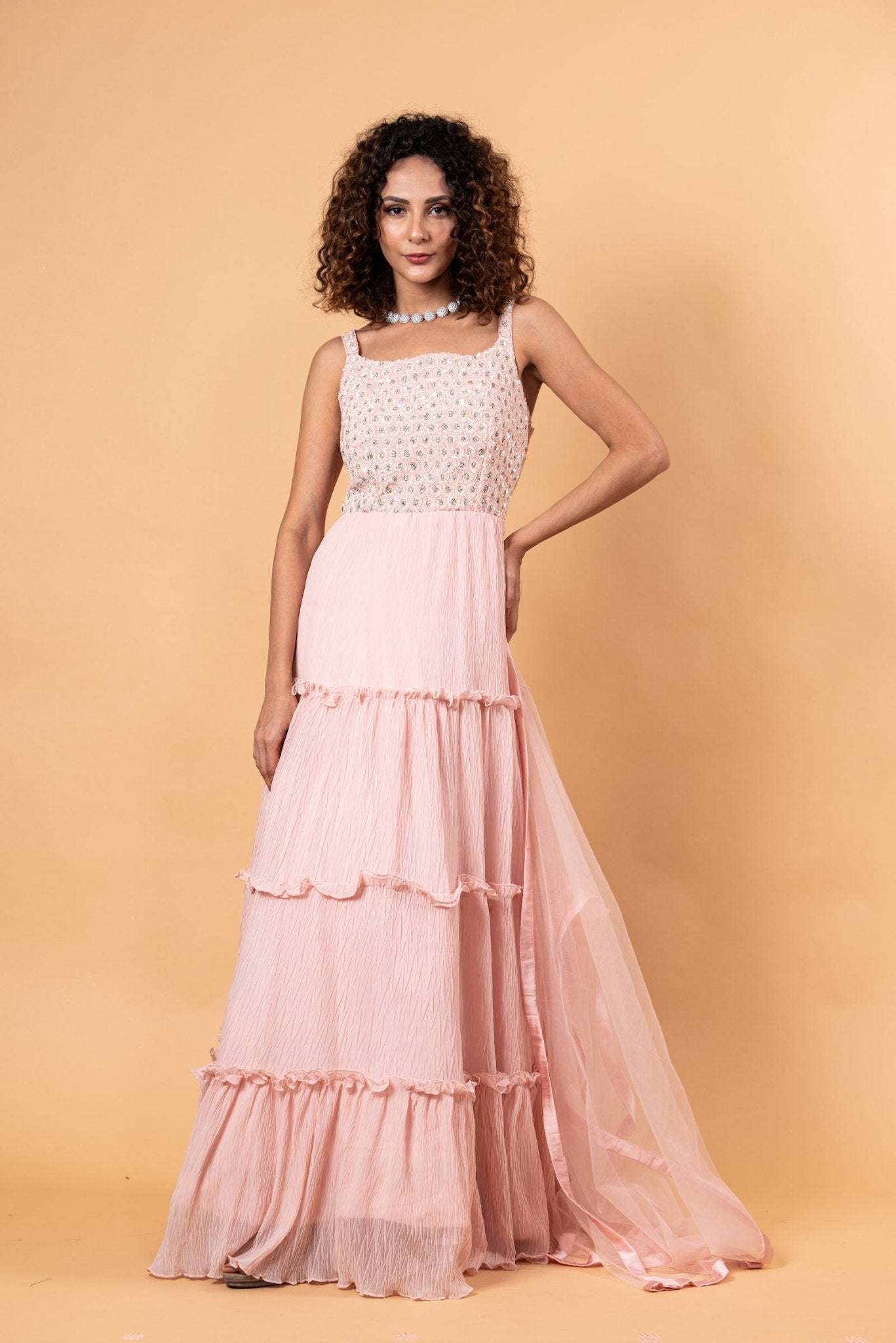 Elegant Pastel Pink Embroidered Gown