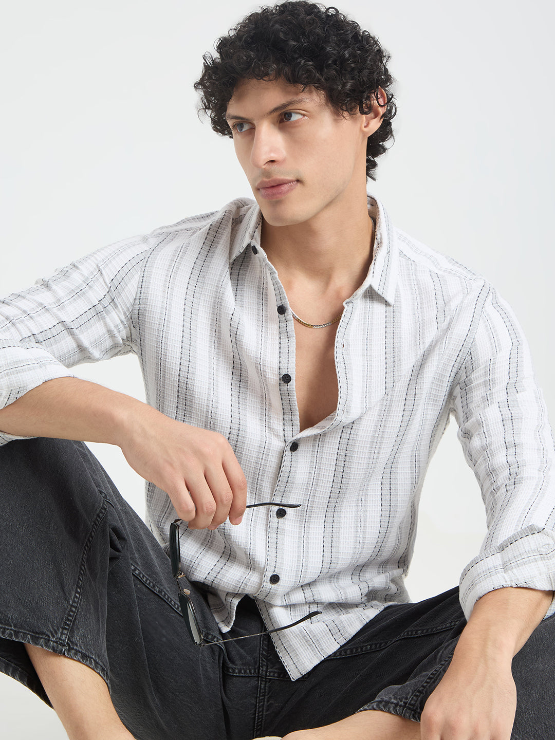 Be the first to review “Grey & White Dobby Striped Shirt”