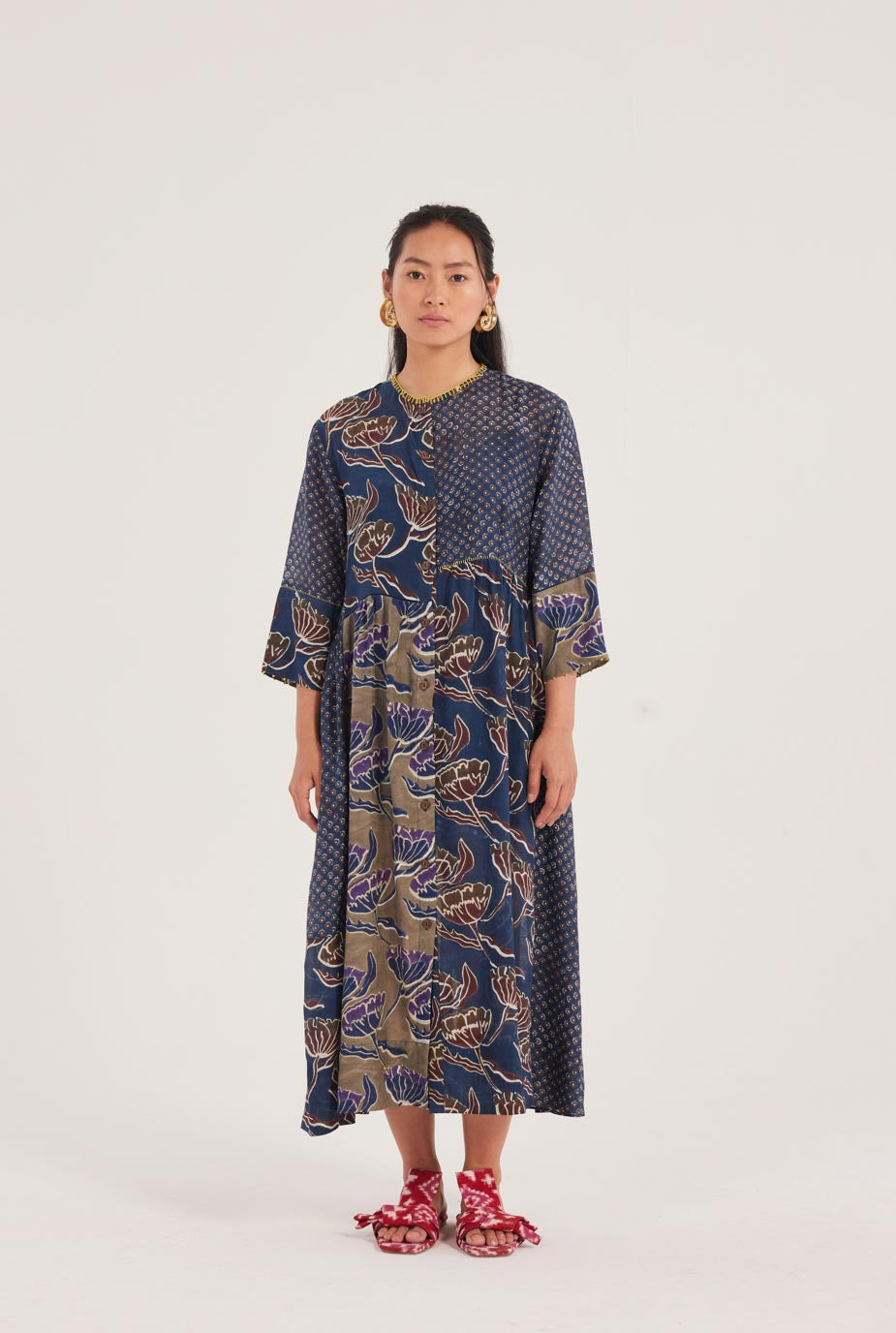 Relaxed, playful, and full of little surprises. This loose-fit dress mixes things up with mix and match panels, fagotting details running at the front, back and the sleeves with a hint of hand embroidery at the neck. Easy to wear, hard to ignore.