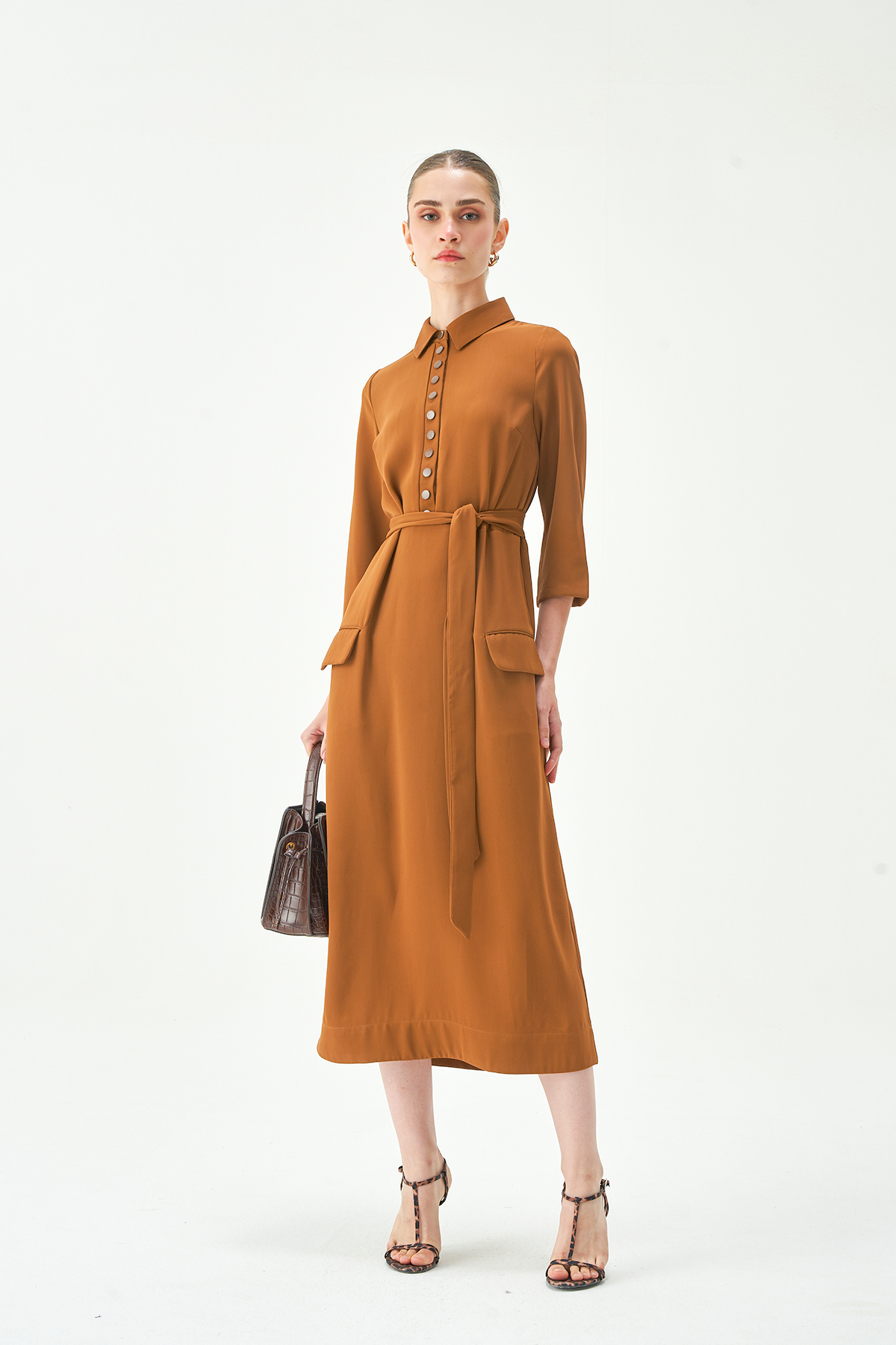 Lara dress constructed in premium Japanese crepe is a versatile workwear staple. Pair yours with leopard print stilettoes along with a tote bag for a complete look.