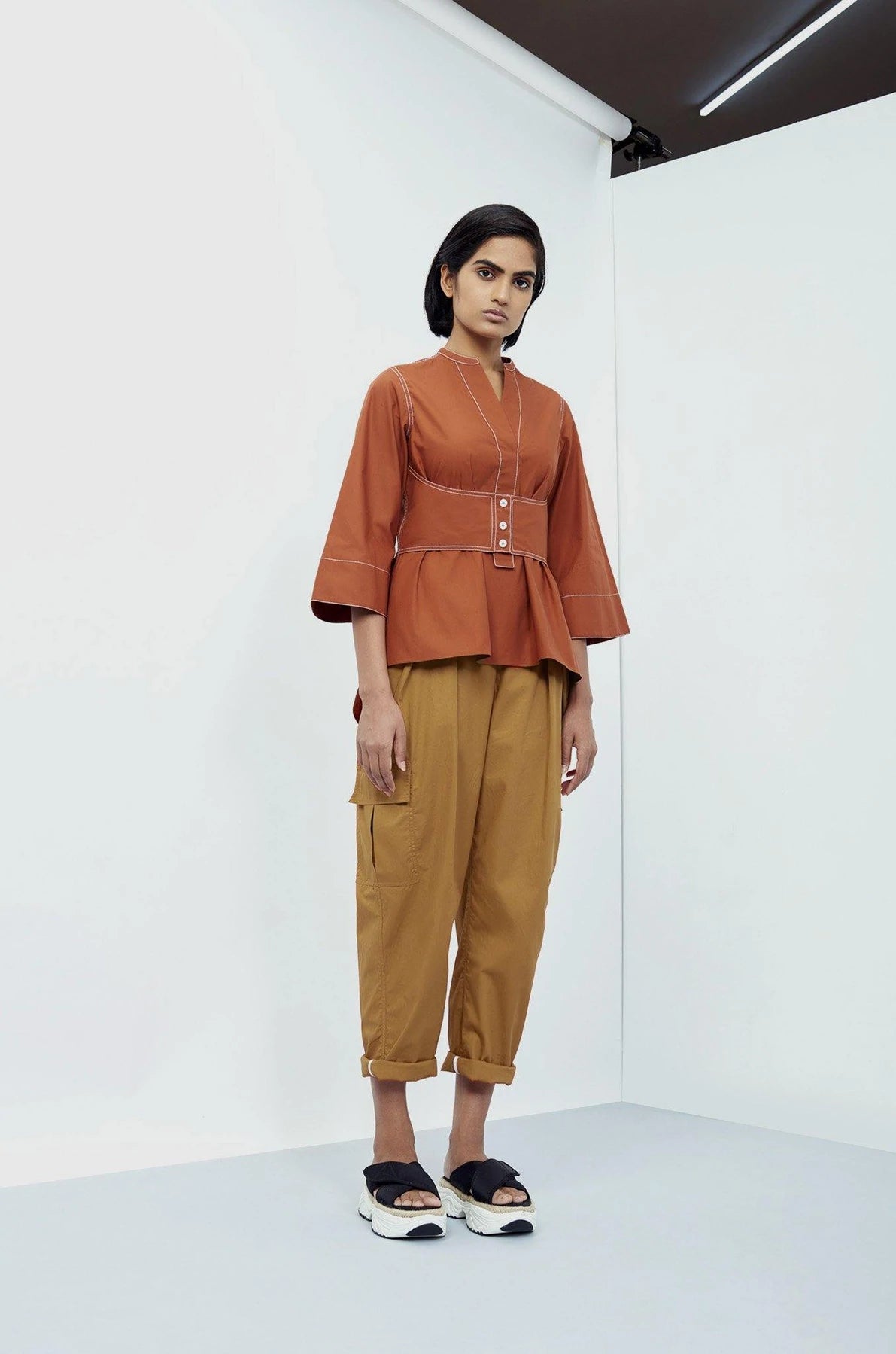 Re-engineered shirt with an attached shirt overlay. The Lexa shirt is constructed using structured cotton gabardine using topstitch detailing and contrast shirt buttons.Fabric : 100% Cotton Poplin.