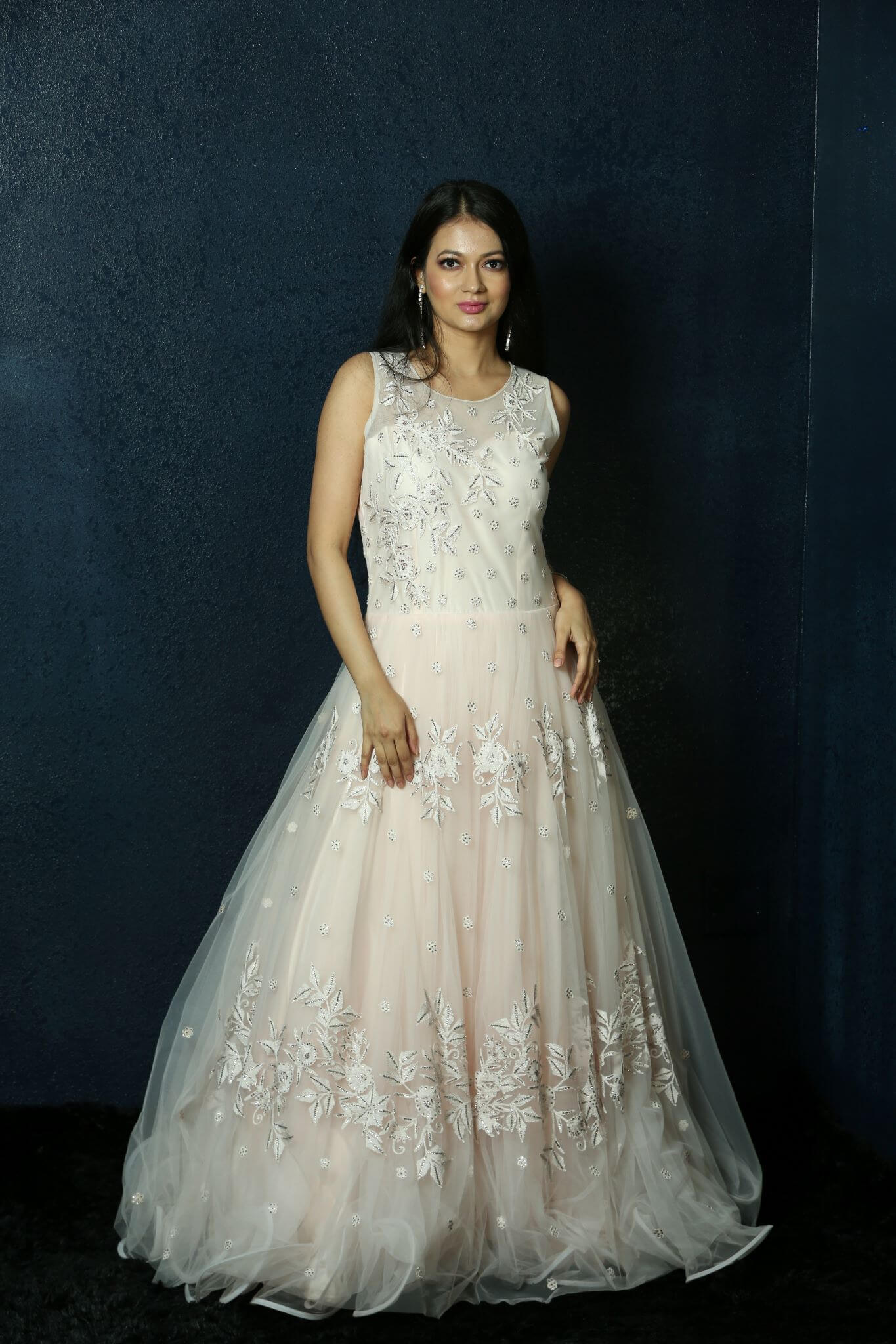 Light Pink Net Gown Embellished With Swarovski Embroidery