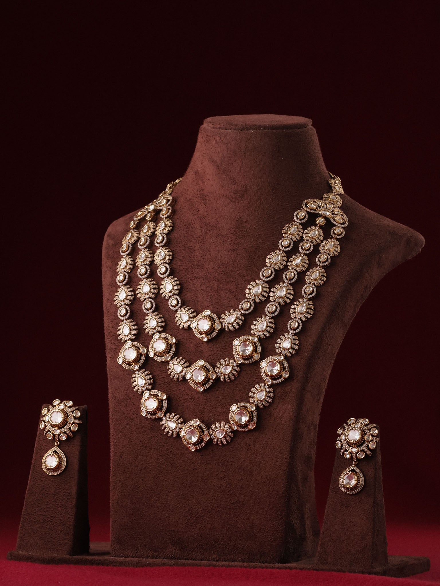Triple-layered polki-inspired necklace with antique royal finish