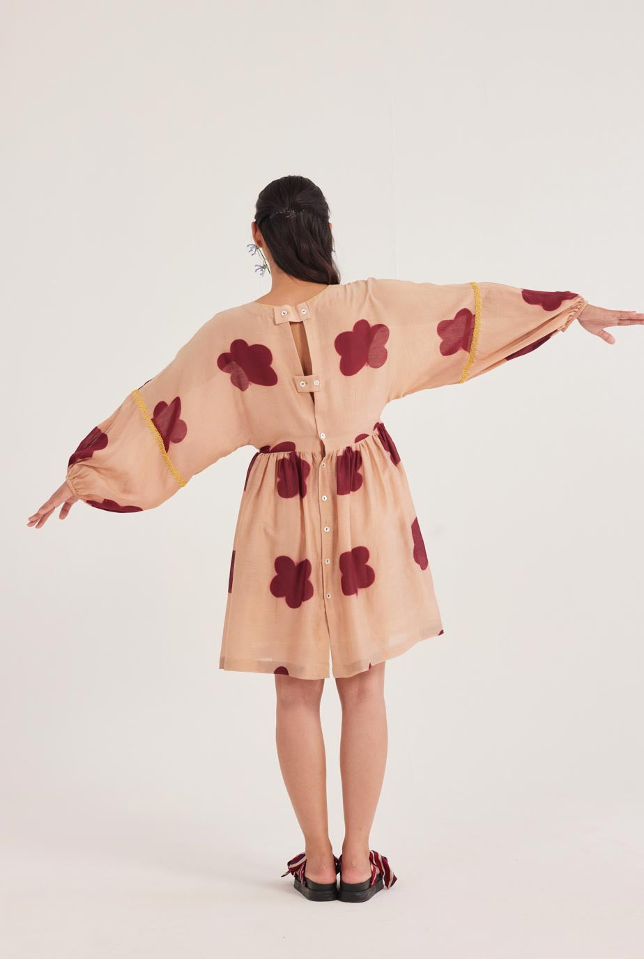 The easy clamp dye dress is spliced with a generous centre back opening. The gathered skirt and billowy sleeves create beautiful movement and volume.?