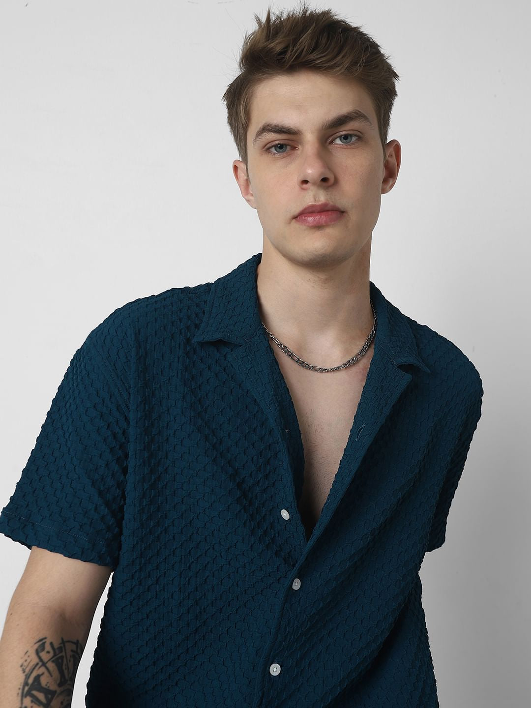 Step up your style game with our Teal Embossed Patterned Oversized Shirt. Featuring a striking embossed pattern, this shirt brings texture and depth to your look. The rich teal colour and relaxed oversized fit make it a perfect choice for both casual and dressy occasions. Effortlessly chic and comfortable, it’s a must-have for any fashion-forward wardrobe.