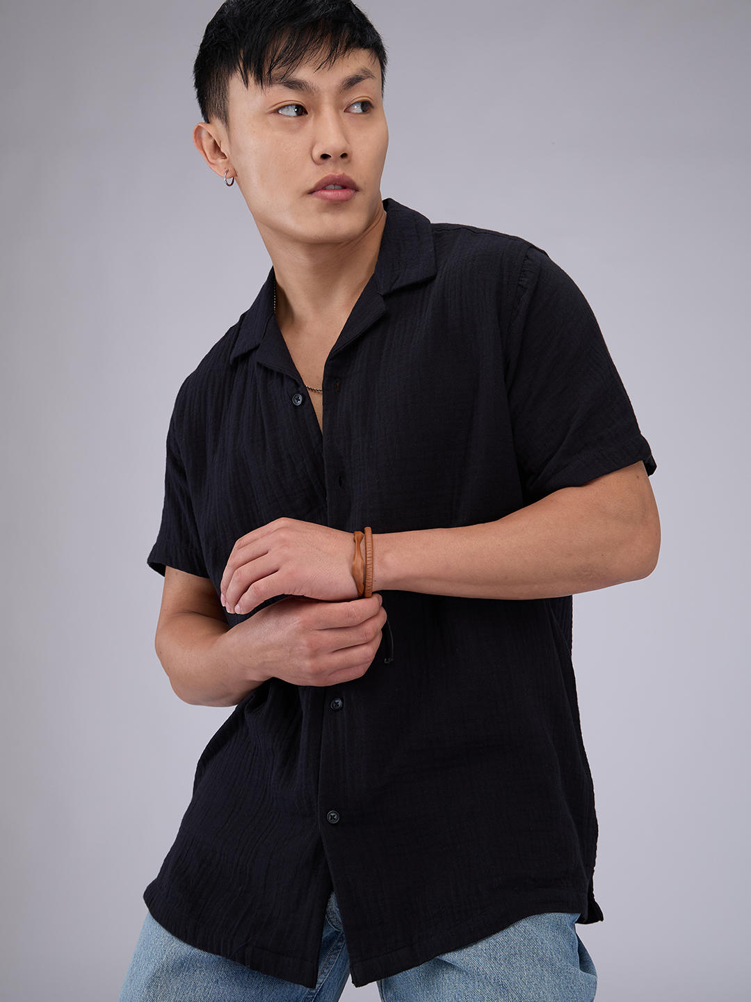 Timeless Black Double Cloth Crinkled Shirt