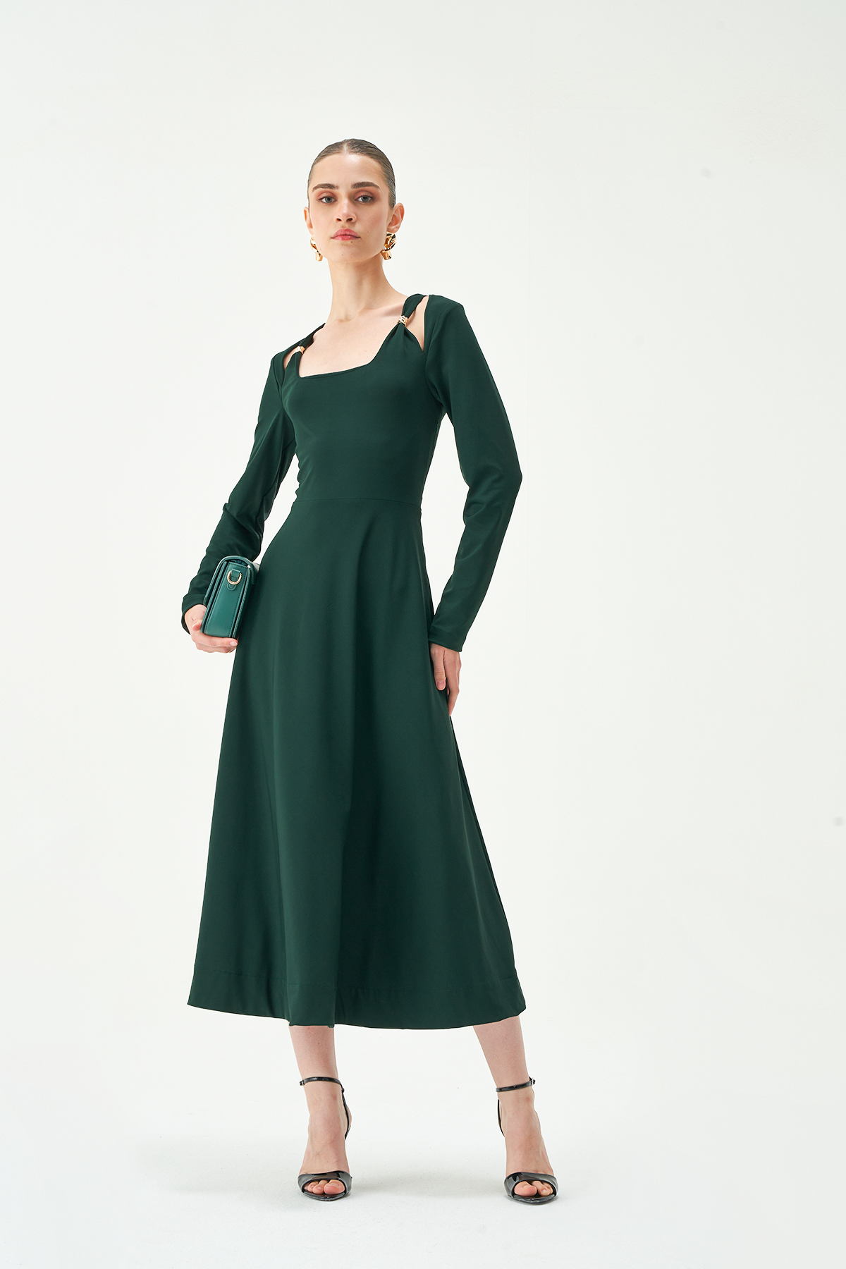 The Tullia Midi Dress is a statement piece that seamlessly blends comfort and style. Featuring a flattering silhouette with a cinched waist and soft fabric, this dress is designed for both ease and elegance. Style with minimal accessories and a pair of heeled sandals to complete a refined, modern look.